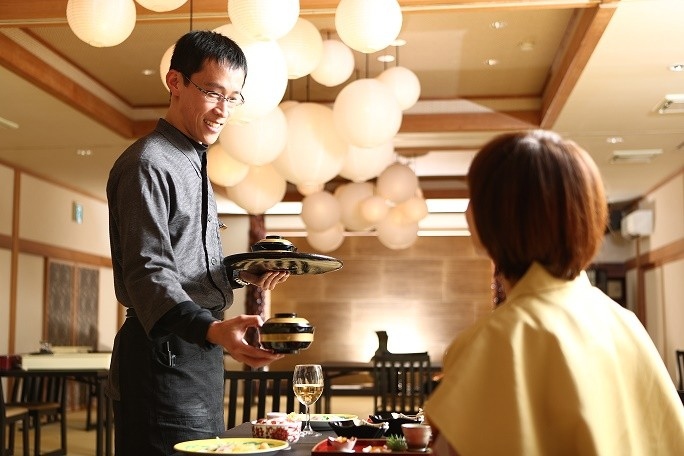 当館ではこれまで夕食を懐石料理としてご提供して参りました。その提供方法につきまして、お食事の進行具合を見ながら一品一品ご提供させて頂いておりましたが、今般の新型コロナウイルス感染症対策と致しまして、当面の間、下記の通りのご提供となります。