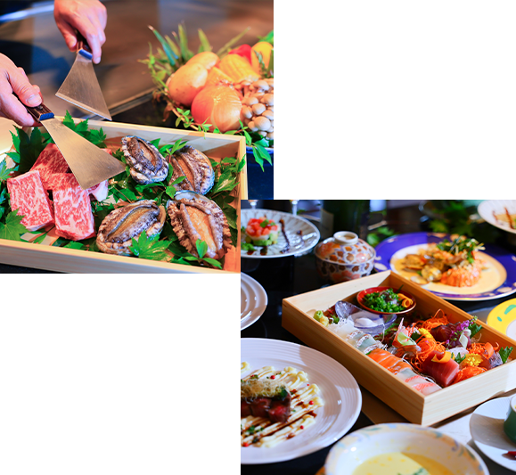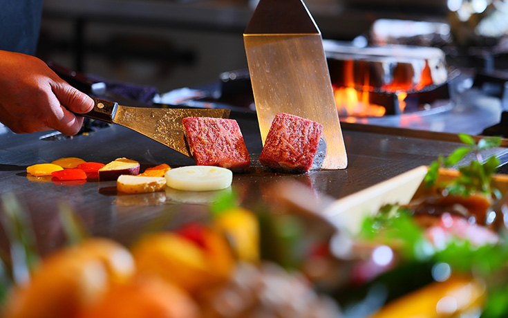 お客様の目の前で仕上げる鉄板料理をはじめ、